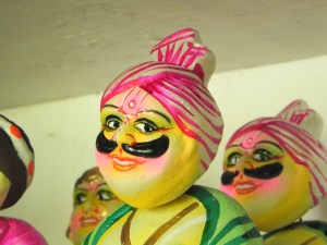 I also asked them about Bommai Golu and what they knew about how their dolls are used in people’s homes. Most of them were aware of the large displays of Golu held by temples/ exhibition halls but none thought of it as a domestic ritual. While the women of Kondapalle may appear different than their Brahmin counterparts in Andhra Pradesh or even Tamilnadu, their fascination for dolls remains constant. The alankaram (adornment) is what defines how far the owner or creator cherishes her creation. While the Kondapalle women perform their own Golu, where they conscientiously paint and display their dolls for people to purchase; Brahmin women too carefully choose these dolls and decorate their homes for a public display. Each one wants their creativity to be showcased, their creation and its’ alankaram to be noticed.